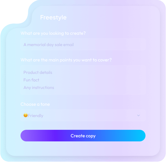 Choose from a variety of AI tools to write social media ads, hero sections, blog posts..